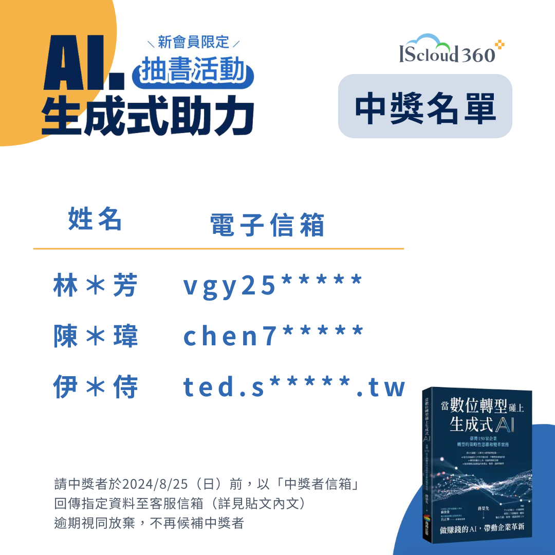 【中獎公告】\新會員限定/ 生成式AI書籍免費抽!於8/18前加入會員,就有機會獲得AI書籍!