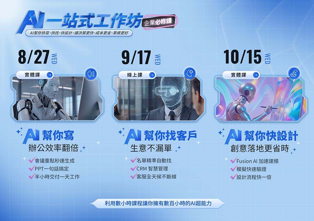 📣 這個 8–10 月,我們特別規劃 三場 AI 實戰工作坊,