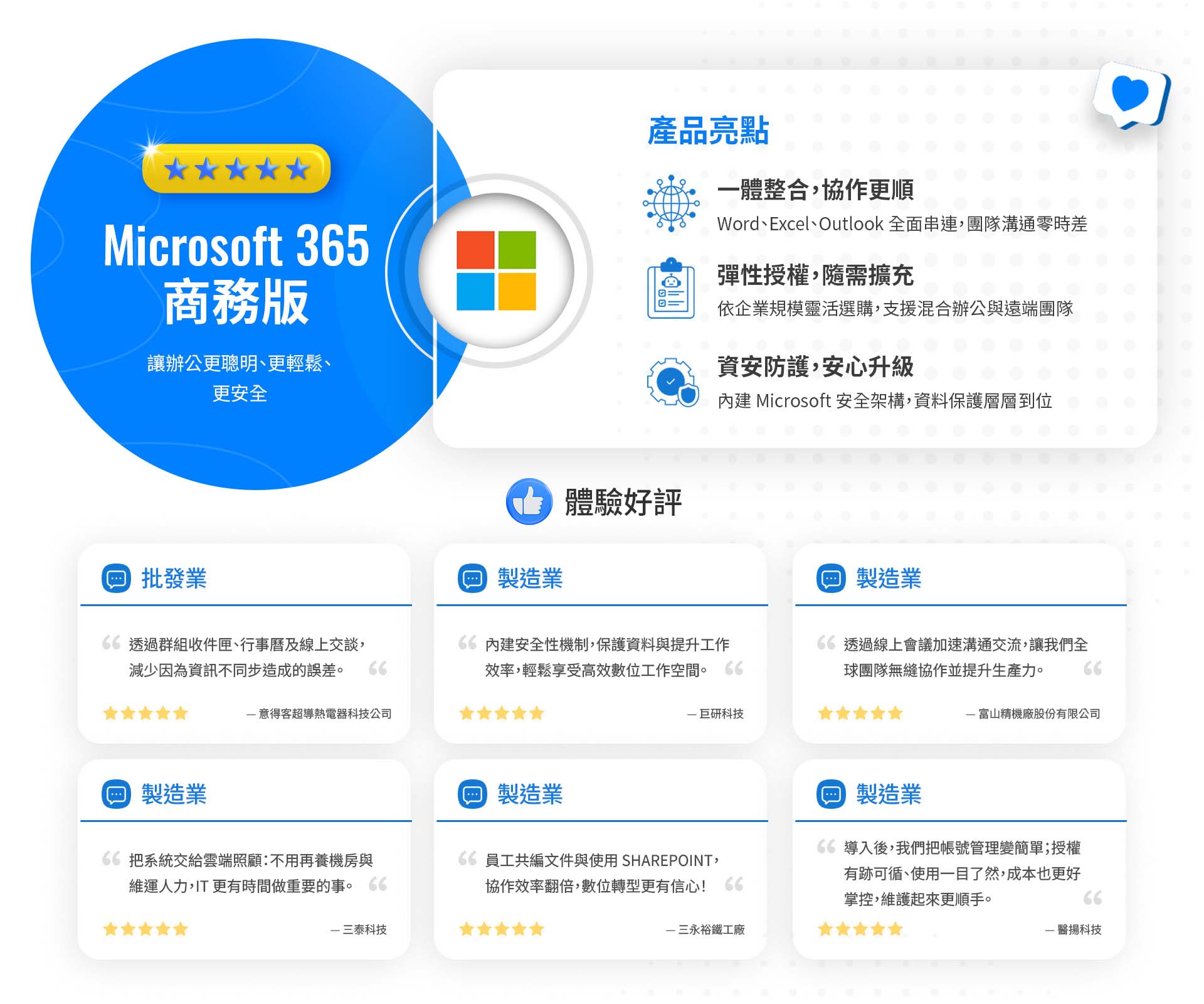 - 一體整合:Word、Excel、Outlook、Teams 全面串接