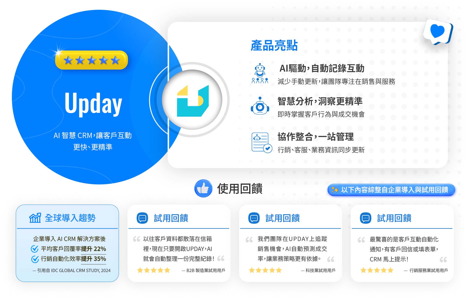 Upday AI 智慧 CRM|AI 幫銷售團隊,重新找回「掌握感」