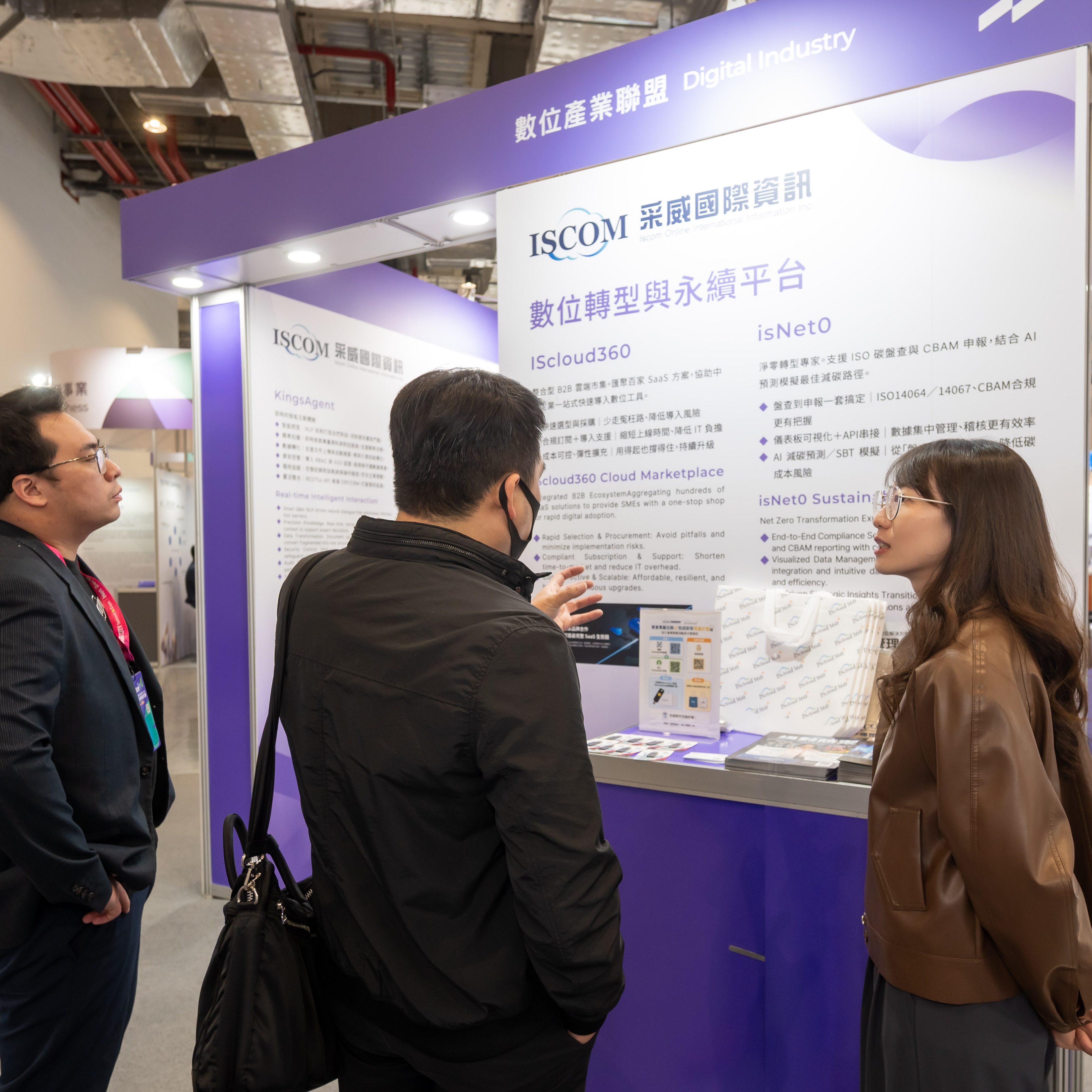 其中,IScloud360 在采威攤位中以「數位轉型與永續平台」主題區參與展示,聚焦企業在雲端工具選型、數位升級與永續治理上的常見需求,讓導入路徑與整合方向更清楚,也更貼近企業實際應用情境。