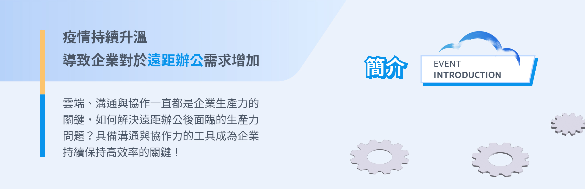 - 本活動為免費研討會,採網路事先報名制,歡迎企業主/高階決策者、業務人員、IT 管理人員、行銷客服人員等對於遠距工作有需求者踴躍報名參加。
