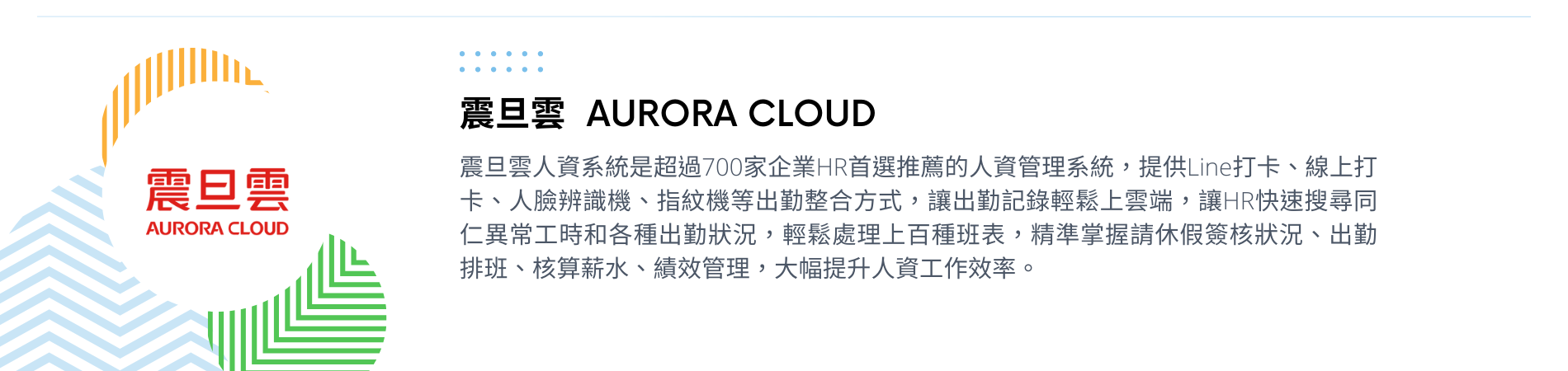 震旦雲 HR系統提供多樣化人資數位管理功能:即時多班別假請、薪資加班費統計、手機排班通知,讓人資省去紙本核對校正時間,員工也隨時於系統上查看自己的排班表、出勤紀錄。全面提升人資管理量能,並依據不同產業,彈性調整最適合的排班管理解決方案!