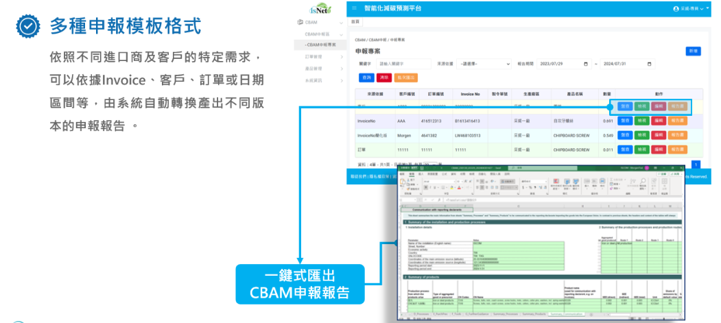 3「CBAM申報雲」讓出口商輕鬆應對碳邊境調整機制!透過模組化管理,簡化申報流程,支援多市場需求,讓您一鍵生成報告,隨時掌握最新法規,提升申報效率!